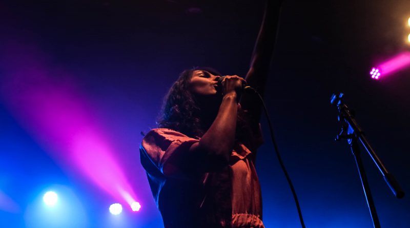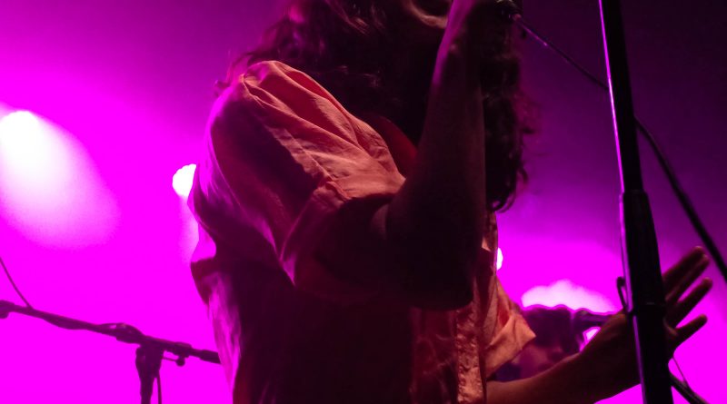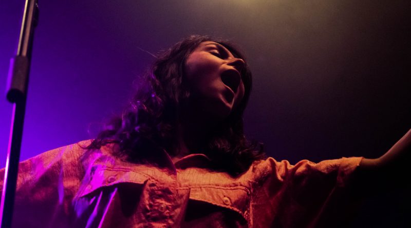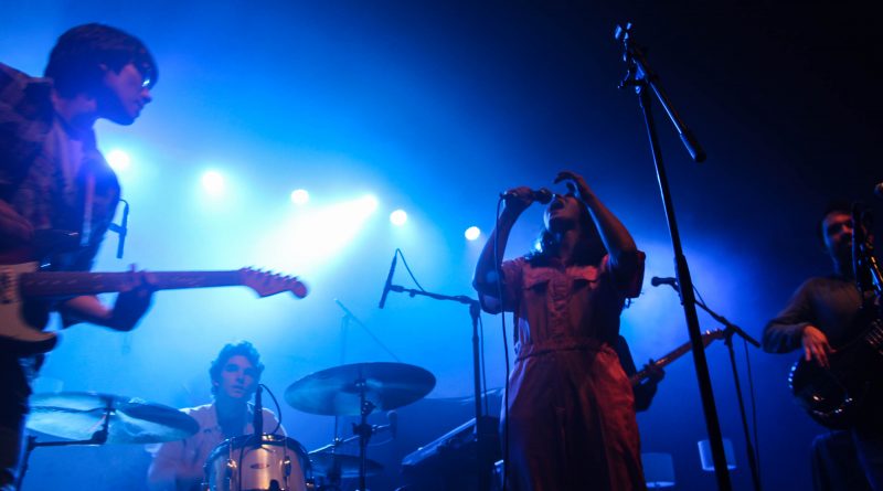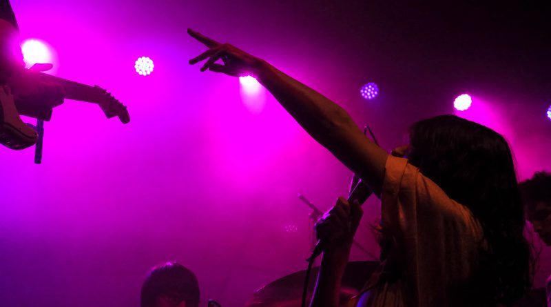 By the end of their second song, they had impressed the crowd, filling the venue with an abundance of energy. Sartino has an amazing stage presence, jumping around the stage, making it hers, along with Fraser’s slight backup vocals from behind the drumset, and Yangmi yelling small countdowns that contributed to the energy beaming off the stage. One thing I noticed during their set was that between songs, instead of someone talking to the crowd in silence, they added their little beats for background music, which made it surprisingly a lot more entertaining than you’d expect. Stripping things down a bit with “Birthday Song,” another one of the tracks on their impending album, the only two people left on the stage were Sartino and Yangmi playing an acoustic guitar. With Yangmi sitting barefoot and criss-cross on the stage and Sartino clutching her microphone tight, there’s a quiet hum of conversation from the back of the venue, but that didn’t stop Sartino from singing with such passion and emotion. Drawing the crowd back in, they covered “Kids” by MGMT, earning them a cheer of excitement from the crowd. With the rest of the band joining them back on stage, they returned to their high energy performance with Sartino bopping around, and even reaching the point where she ran off the stage and into the crowd, dancing with everyone.