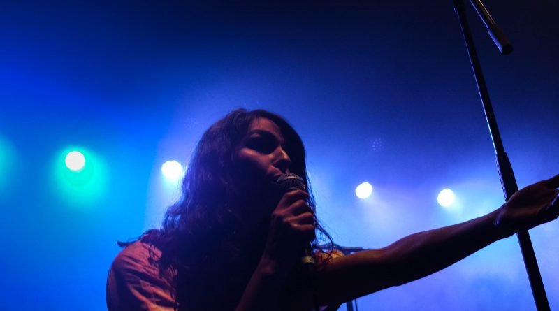 By the end of their second song, they had impressed the crowd, filling the venue with an abundance of energy. Sartino has an amazing stage presence, jumping around the stage, making it hers, along with Fraser’s slight backup vocals from behind the drumset, and Yangmi yelling small countdowns that contributed to the energy beaming off the stage. One thing I noticed during their set was that between songs, instead of someone talking to the crowd in silence, they added their little beats for background music, which made it surprisingly a lot more entertaining than you’d expect. Stripping things down a bit with “Birthday Song,” another one of the tracks on their impending album, the only two people left on the stage were Sartino and Yangmi playing an acoustic guitar. With Yangmi sitting barefoot and criss-cross on the stage and Sartino clutching her microphone tight, there’s a quiet hum of conversation from the back of the venue, but that didn’t stop Sartino from singing with such passion and emotion. Drawing the crowd back in, they covered “Kids” by MGMT, earning them a cheer of excitement from the crowd. With the rest of the band joining them back on stage, they returned to their high energy performance with Sartino bopping around, and even reaching the point where she ran off the stage and into the crowd, dancing with everyone.
